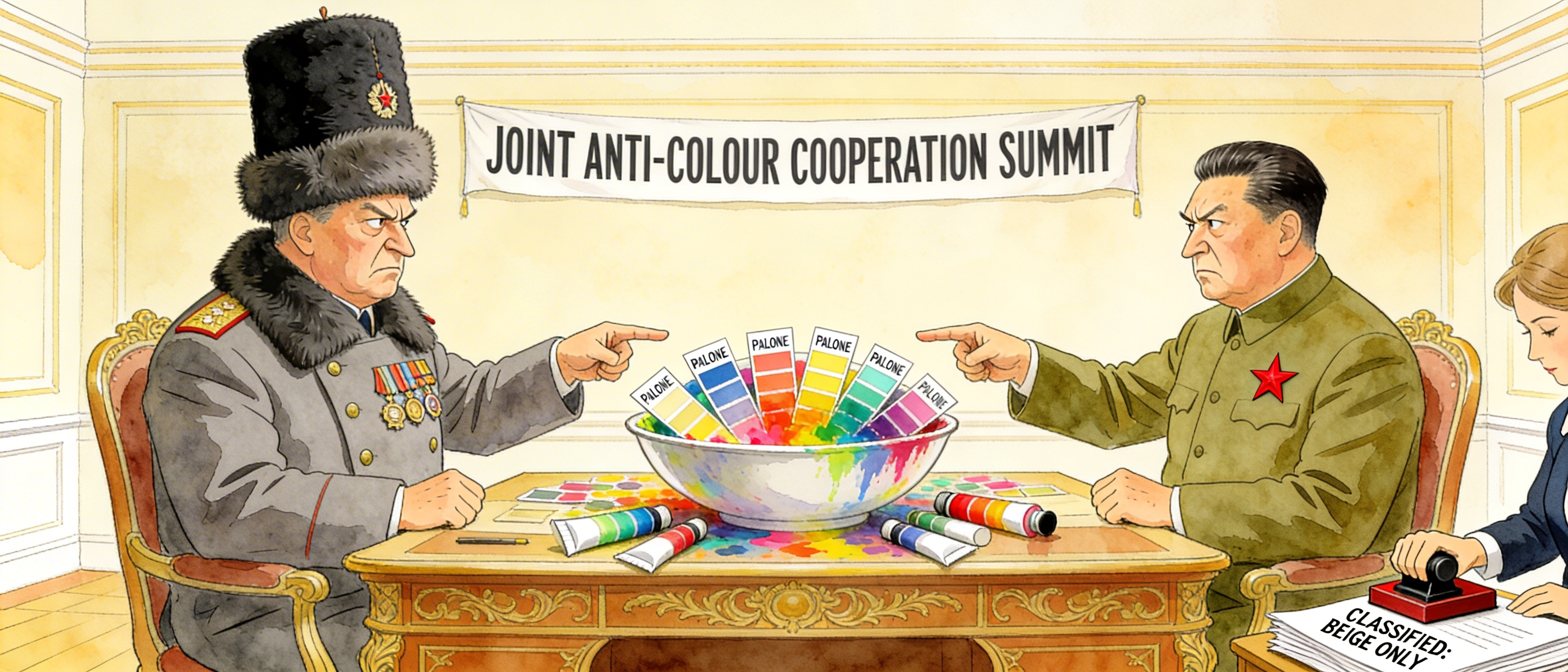 Figure 1.6: “Joint Anti‑Colour Cooperation Summit”: when diversity is dangerous, beige is the only safe option