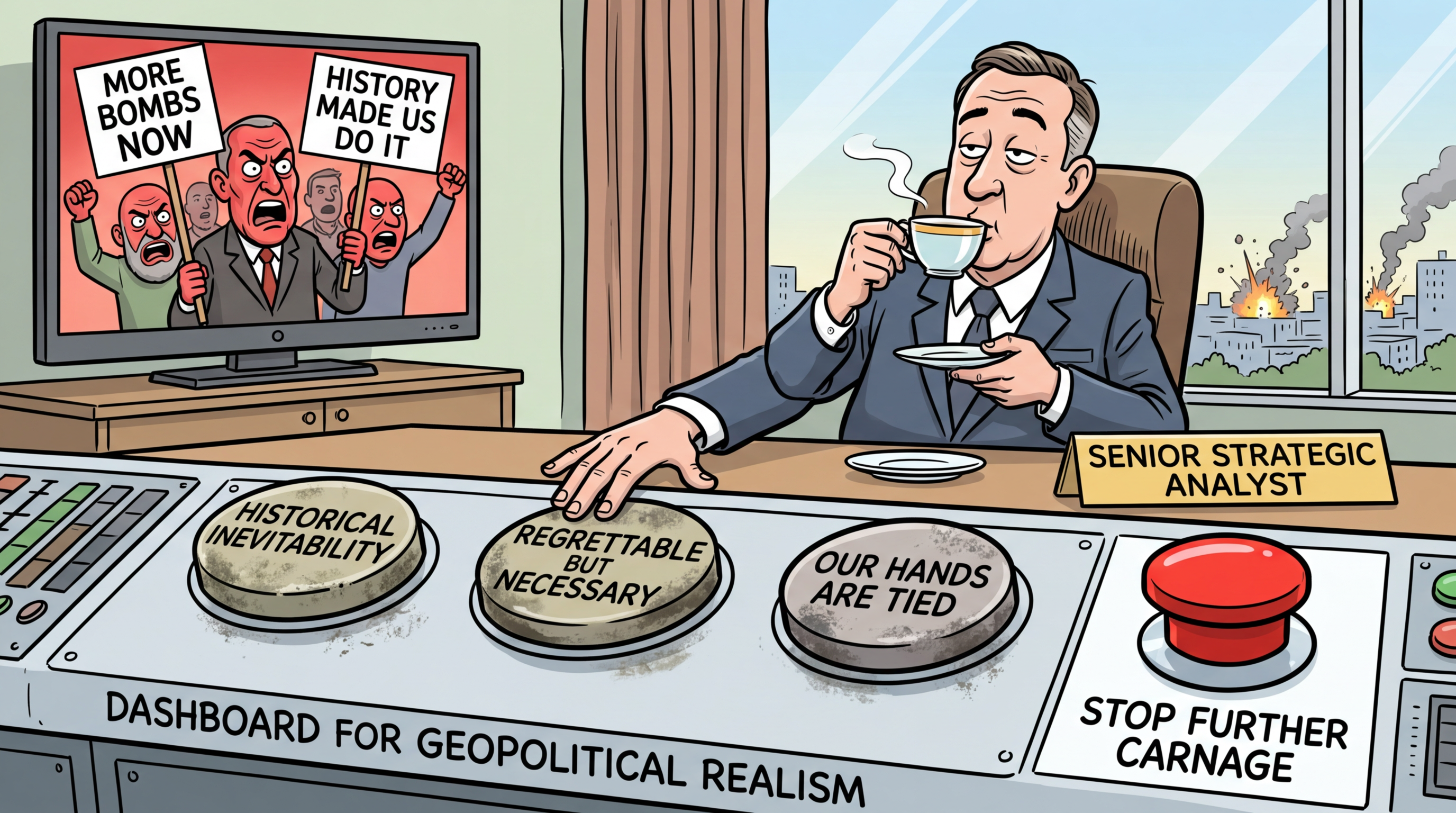 There is a moment—which each person locates at a different point in their biography—when geopolitical reality ceases to be a tolerable backdrop and becomes a personal affront. For any citizen with a minimal investment in understanding the world—the kind acquired not necessarily in lecture halls but through a newspaper subscription, a working historical memory, or simply the habit of paying attention—that moment arrives as an obscene intrusion on their phone screen: a missile strike on a maternity hospital, a president threatening to purchase an allied nation’s territory, a Secretary of Defence whose principal qualifications appear to be his morning television ratings, a governing philosophy reducible to three words (lethality, lethality, lethality), and crusading iconography tattooed more permanently across his chest than any strategic doctrine into his record.
