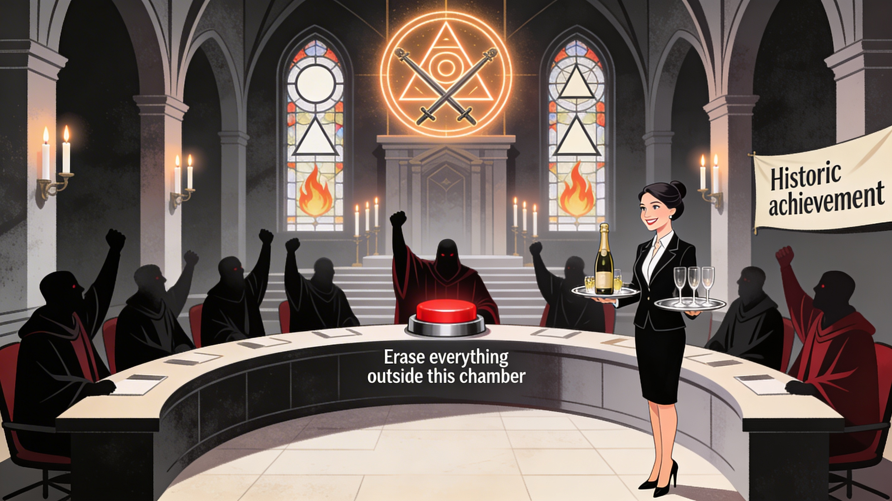 All illustrations in this essay were generated collaboratively with an AI image model (Perplexity, powered by GPT-5.1, using its built-in text-to-image tool). The process followed an iterative workflow: the author drafted initial prompts specifying composition, style (editorial cartoon, 16:9 aspect ratio), and textual elements in British English; the model produced candidate images; and these were refined through successive prompt adjustments—simplifying compositions, correcting lettering, altering symbolic details—until the final versions matched the satirical and ethical intent of the essay. No external image datasets were directly accessed or edited; all figures are synthetic, post-edited only by prompt revision rather than pixel-level manipulation.